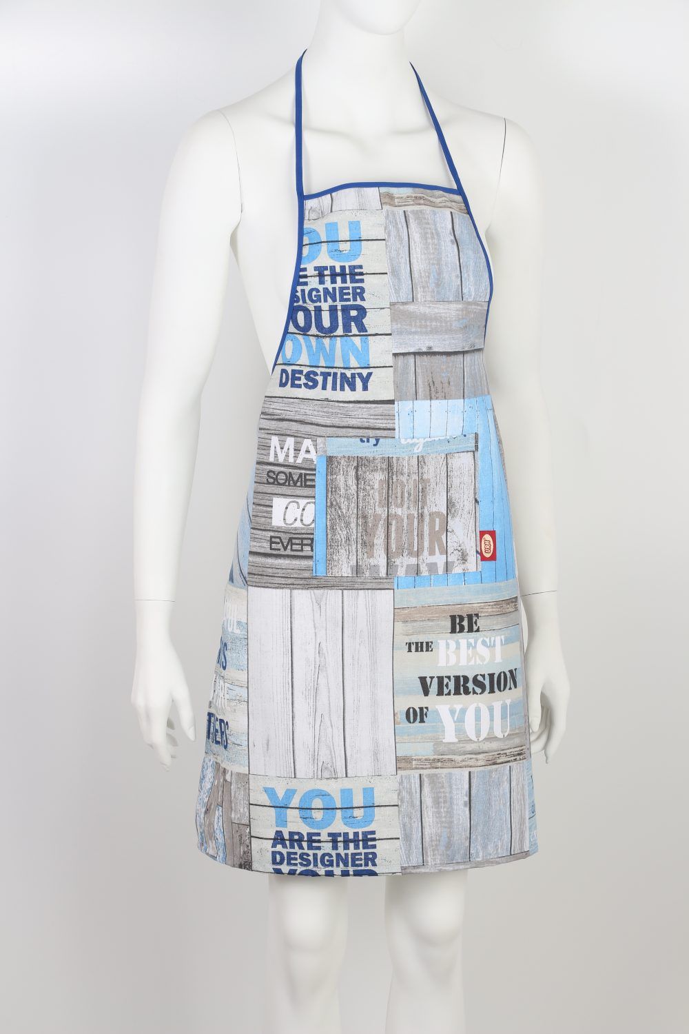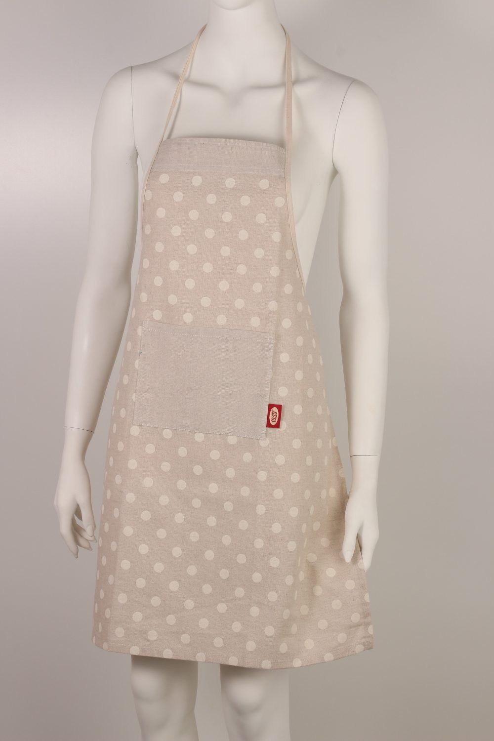 The apron is designed primarily for women. It is available in wide range of fabrics. It has a pocket in the middle.