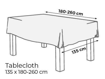 Be it a tablecloth, a runner or a table set, in our wide range of top quality materials and dimensions, you will definitely find a product that will play the role of a key addition in your home. A quality tablecloth or a runner is today an indispensable addition to any kitchen or dining room. Formal fabrics add a smart, festive atmosphere to the room, and allow easy cleaning after the meal. At the same time, the table itself is preserved. The dimensions and fabrics of tablecloths and runners can be seen below. We recommend the maintenance described on sewing labels.