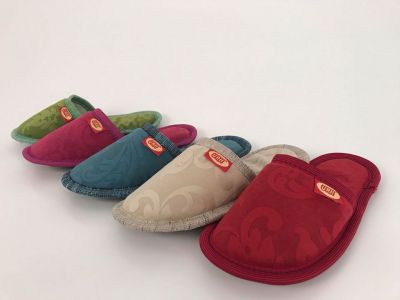 House slippers of different colors, sizes and models. All items except baby slippers are available in sizes 37-38 to 45-46.